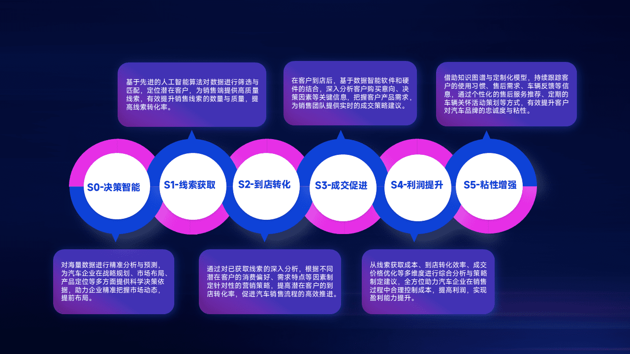 通过拓宽潜在客户来源、、优化线索分配并提高到店转化率,,,,以增强销售效率。。同时,,利用线索数据不断优化分析模型,,,有效提升转化率,,,扩大营销影响力。。。。